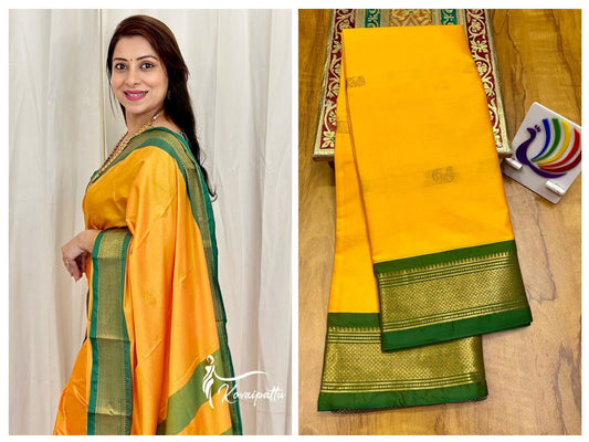 Yellow with Green border saree