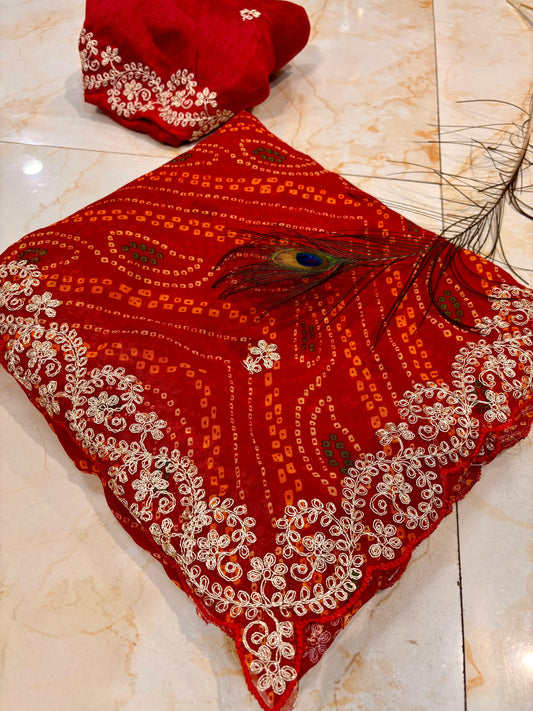 💖 Soft Georgette Bandhej Saree – Pitta Work Perfection Step into timeless elegance with our...