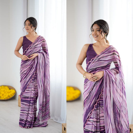 Multi colour stripes Soft Georgette Silk Printed Saree