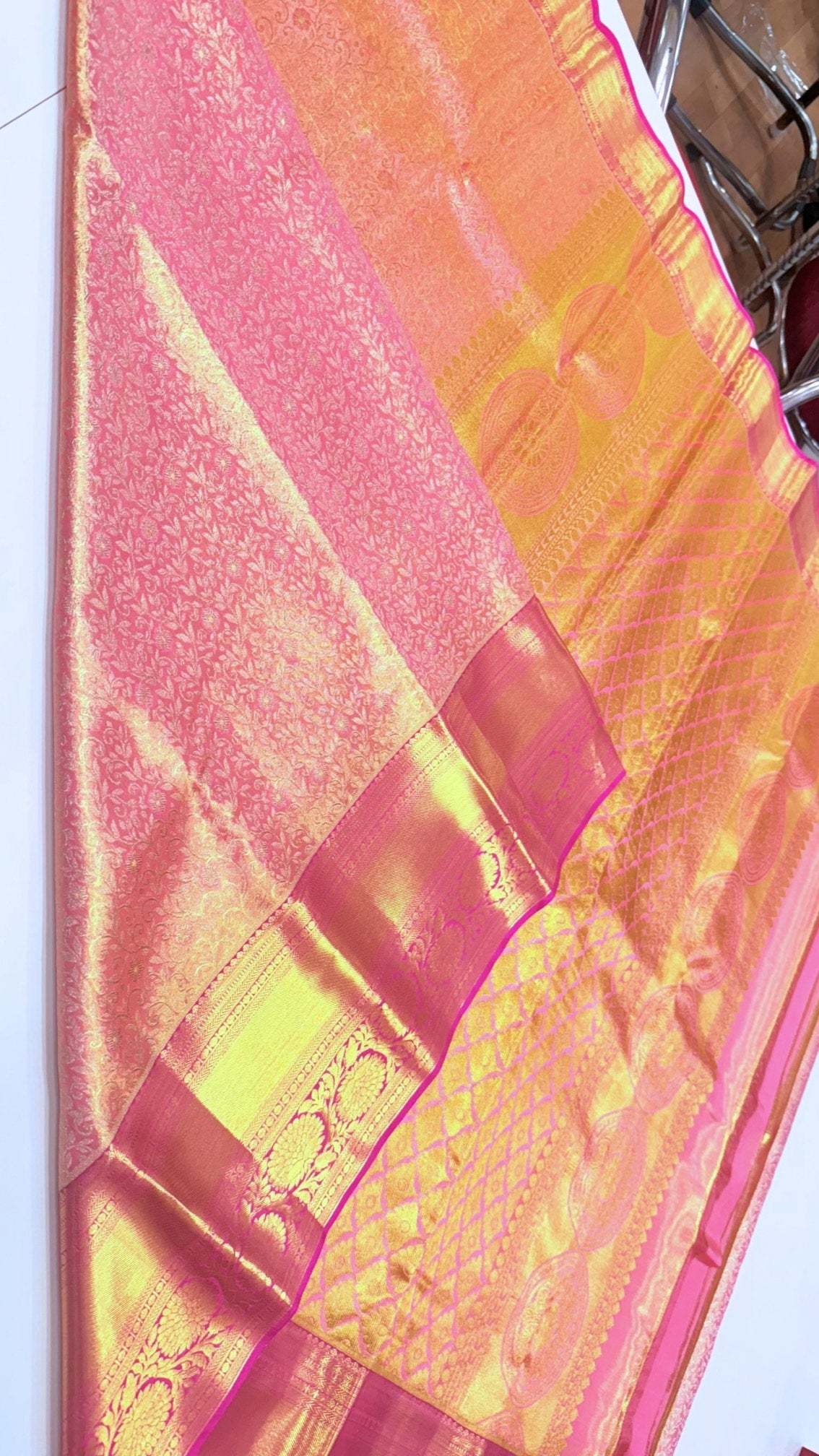A typical saree is between 5 and 9 yards long (approximately 4.5 to 8.5 meters). The length may vary based on the style and draping preferences.