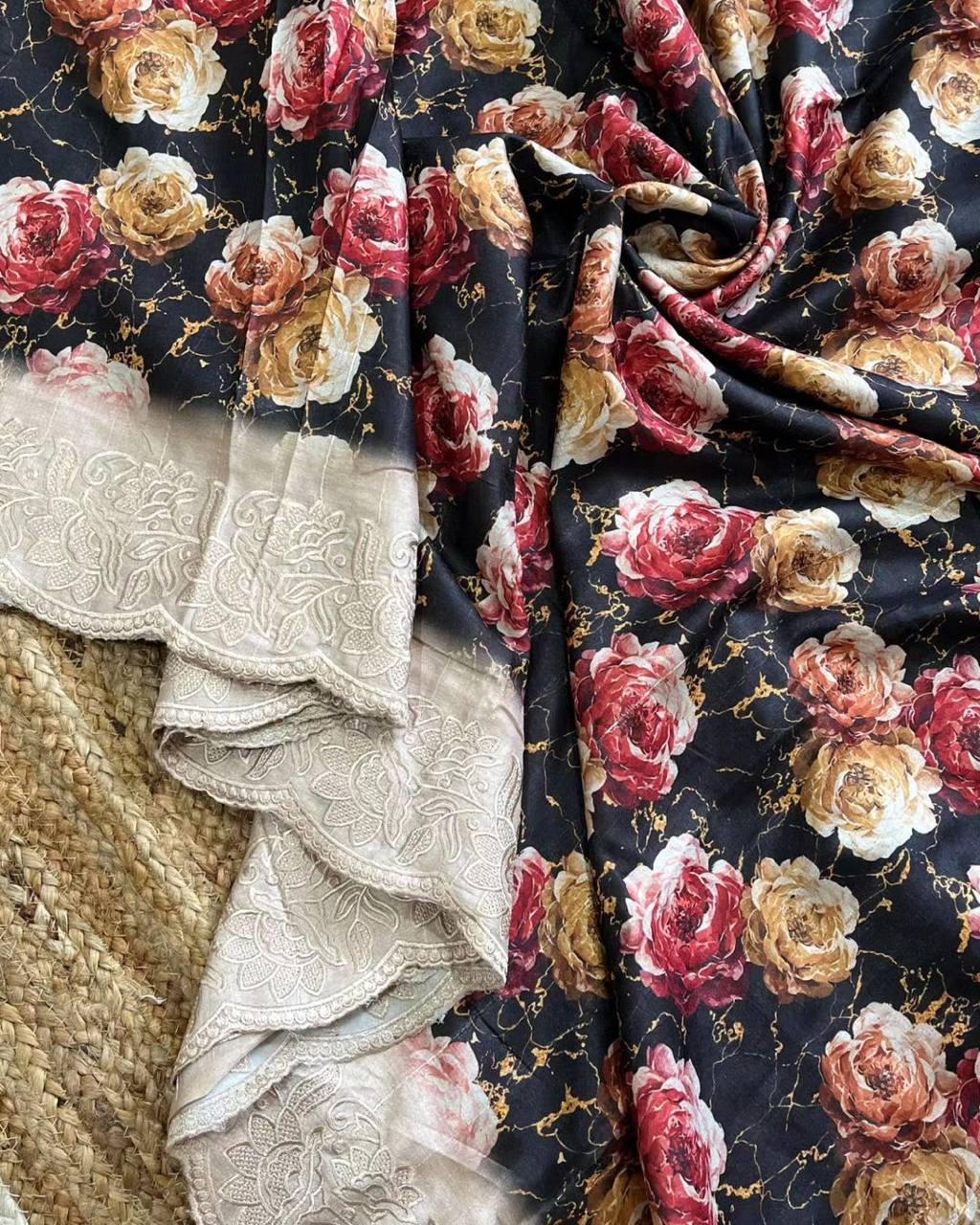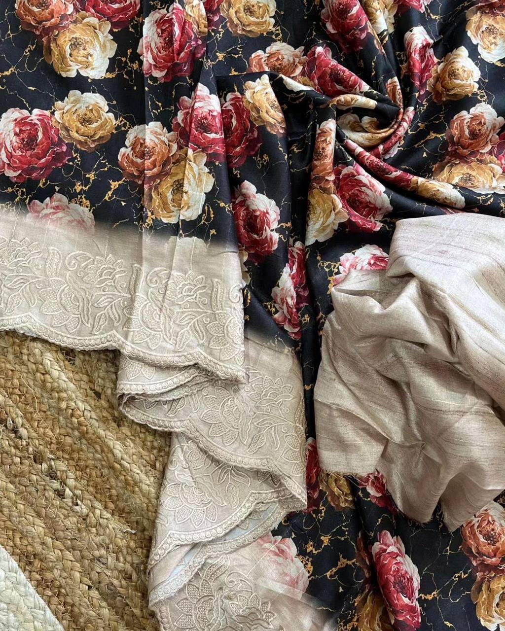 Black with Floral Designer Saree