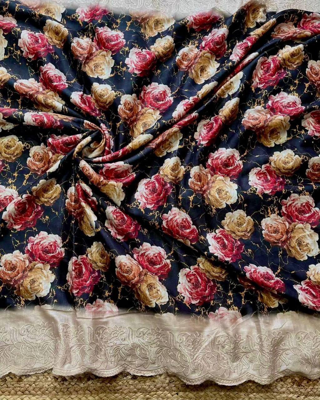 Work: Features a beautiful Heavy Floral Pattern saree highlighted by a delicate Cutwork and Embroidered Border.