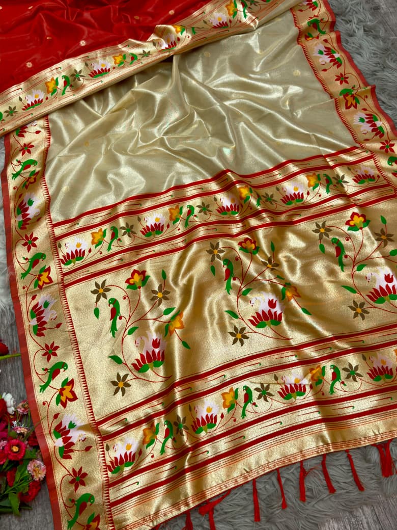 Cream Timeless Organza Tissue Silk Saree ✨