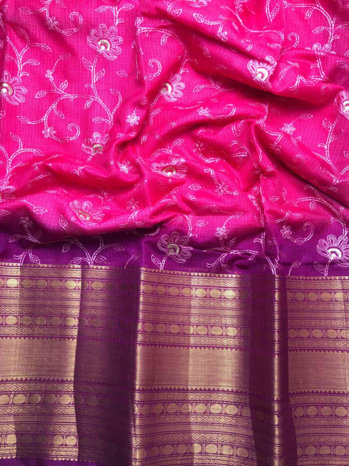 Exquisite Pink Kota Saree with Thread Embroidery