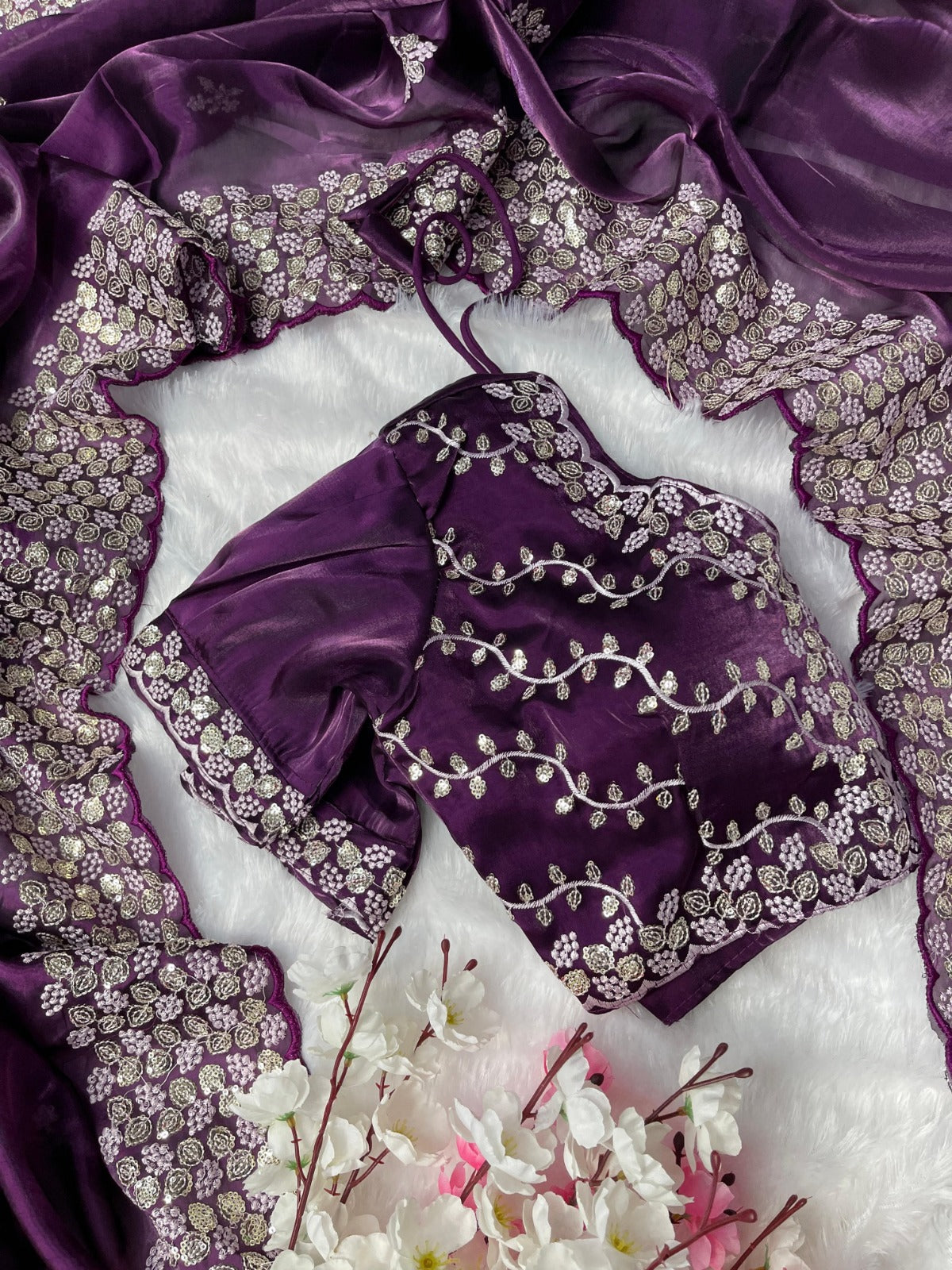 A show-stopping saree for parties, weddings, sangeet nights, and festive events — this design is all about grace, shimmer, and glamour.