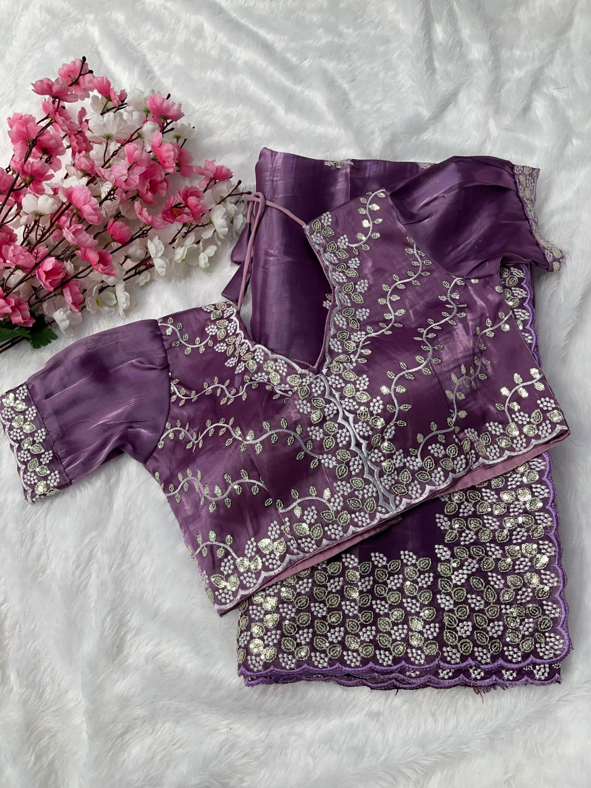 A show-stopping saree for parties, weddings, sangeet nights, and festive events — this design is all about grace, shimmer, and glamour.