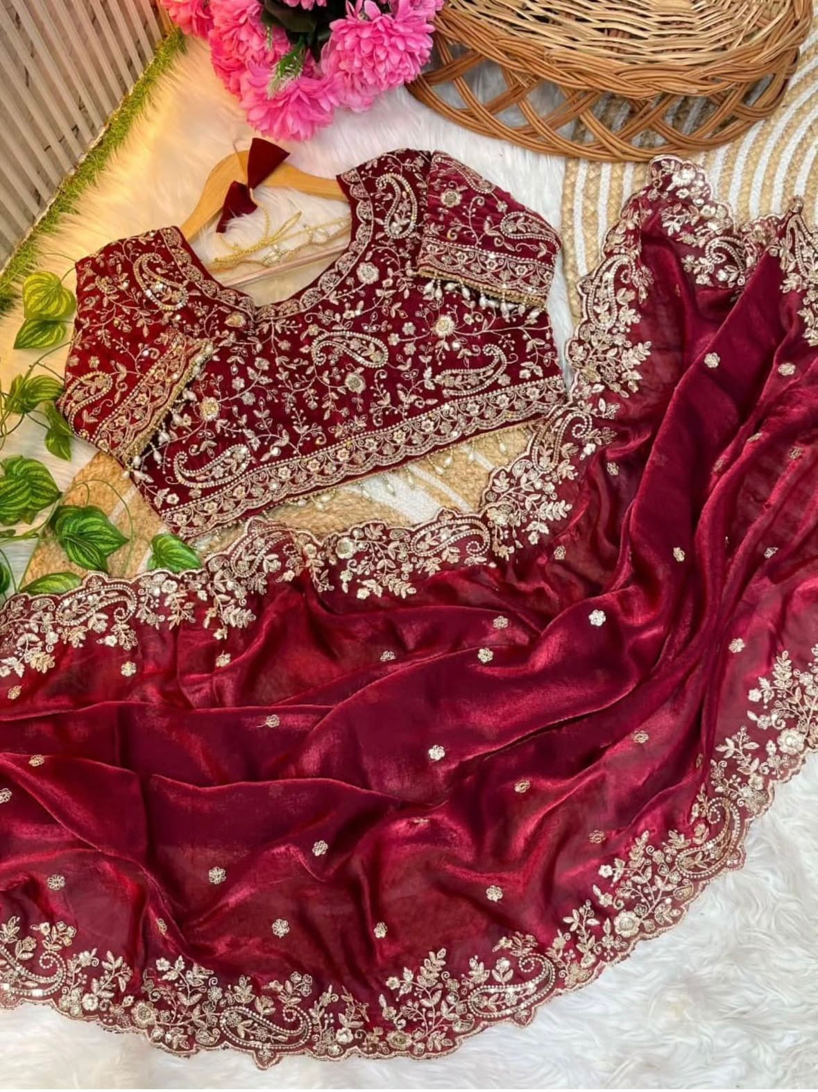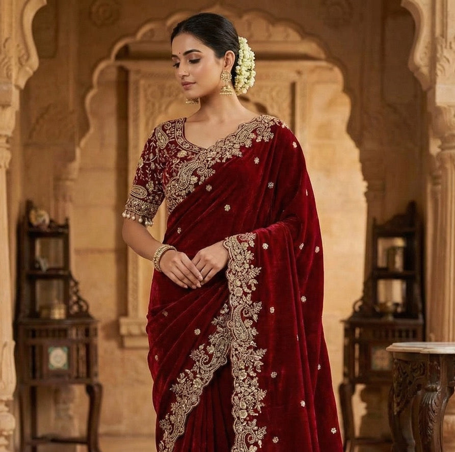 Bridal sarees often feature rich fabrics like silk, brocade, or velvet and are adorned with intricate embroidery, zari work, or embellishments. Popular choices for bridal sarees include red, gold, or maroon, as they symbolize prosperity and tradition.