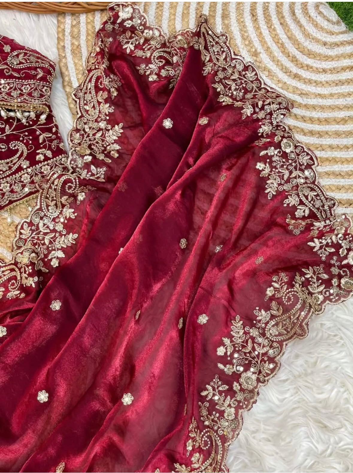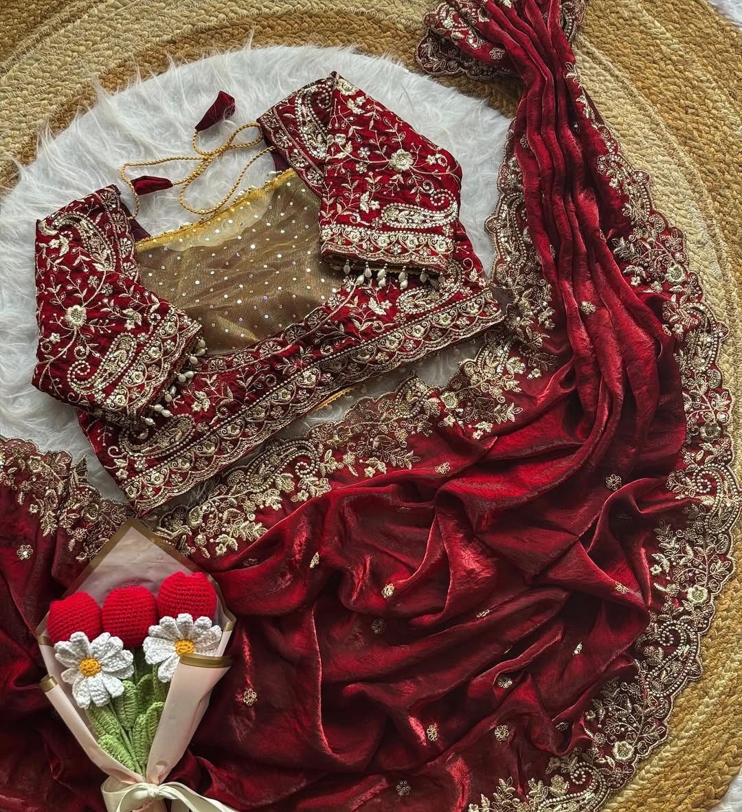 Work: Stunning embroidery work all over the saree, highlighted with a delicate sequence touch-up for that extra glitter! ✨