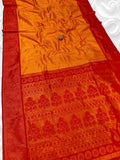 A handloom saree is woven by hand on a traditional loom, often using natural fibers like cotton or silk. These sarees are known for their craftsmanship, intricate patterns, and unique texture.