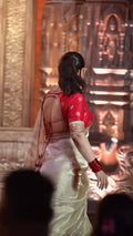 Introducing our latest designer saree that blends traditional charm with dazzling party wear glamour! This piece is an instant show-stopper.