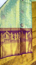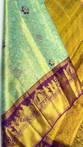 Bluish Green with Purple Border Pure Kanchipuram Silk Saree with Pallaki Design π