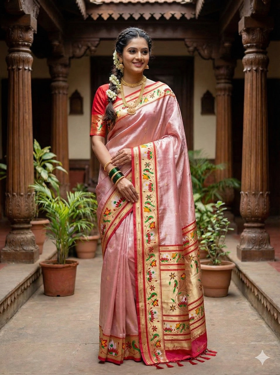 • Design Focus: The saree boasts a Grand, Rich Rajhans Pallu, perfectly balancing tradition with high fashion.