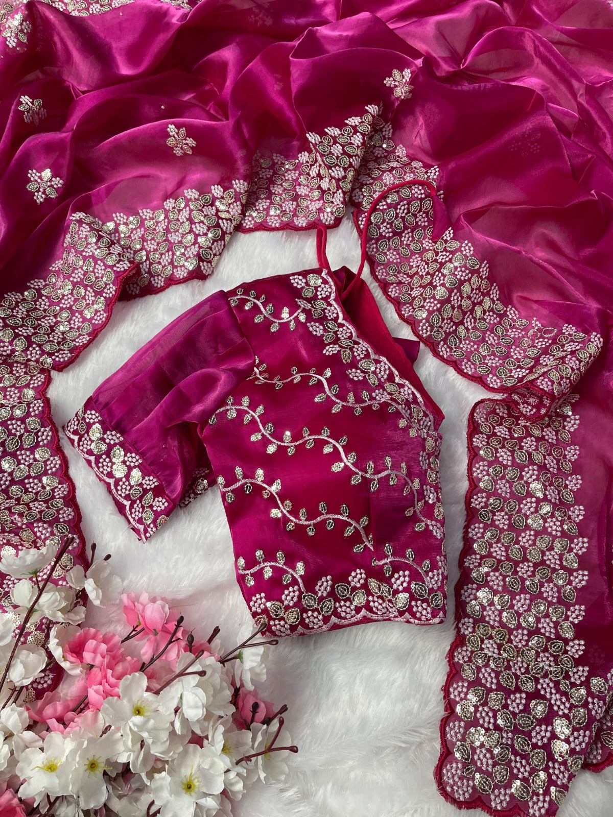 A show-stopping saree for parties, weddings, sangeet nights, and festive events — this design is all about grace, shimmer, and glamour.