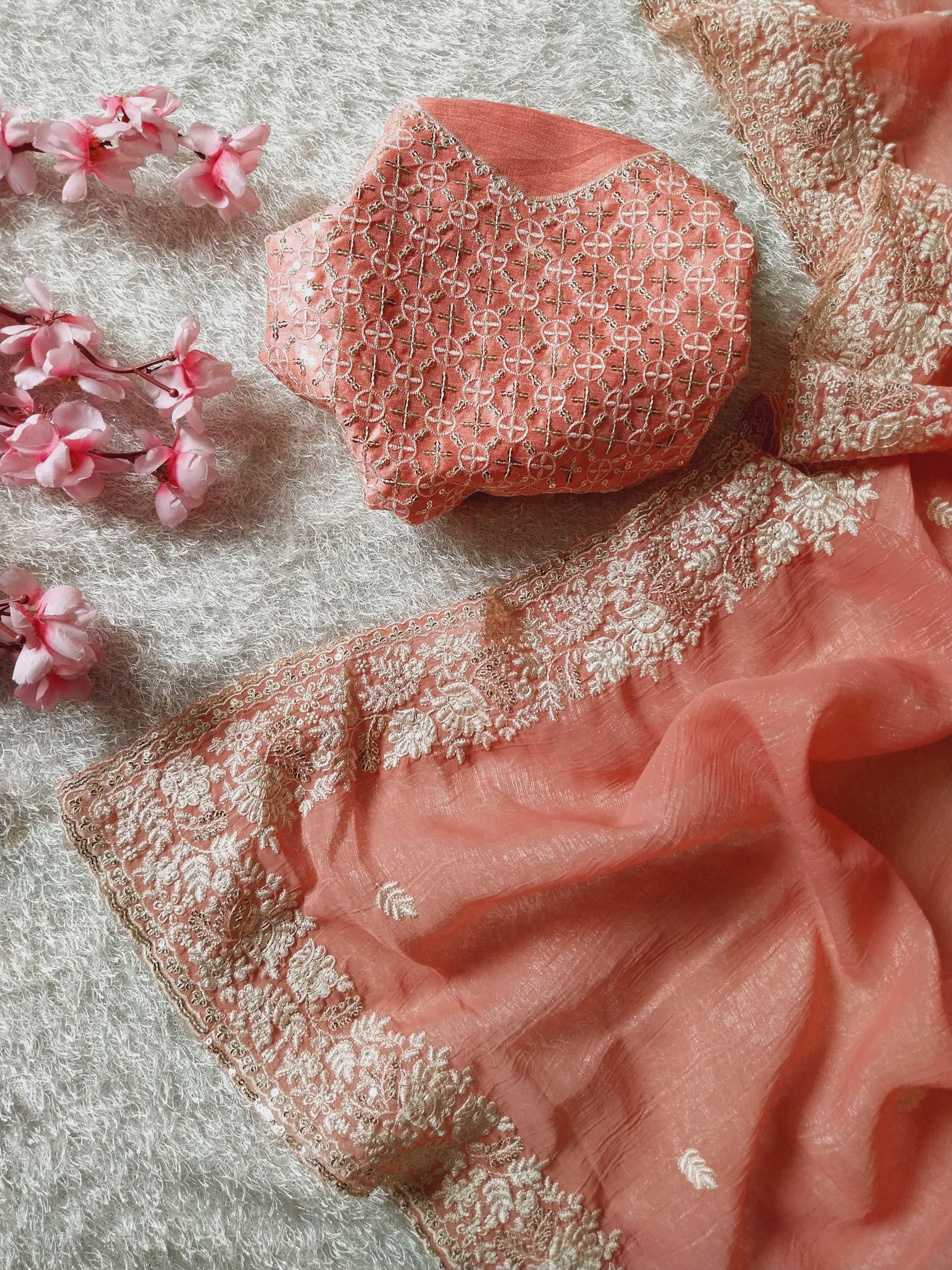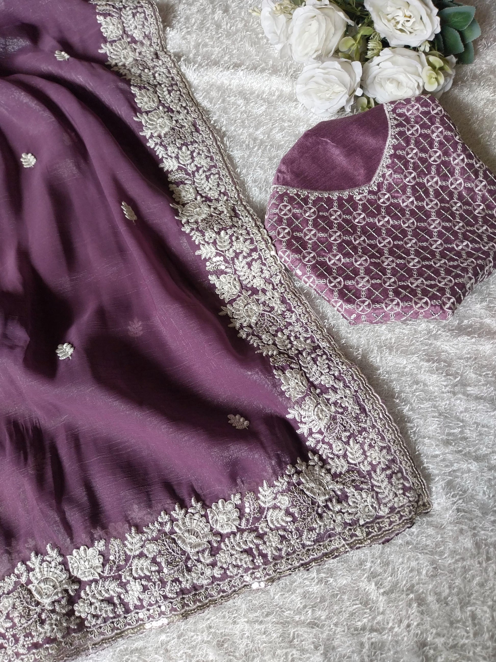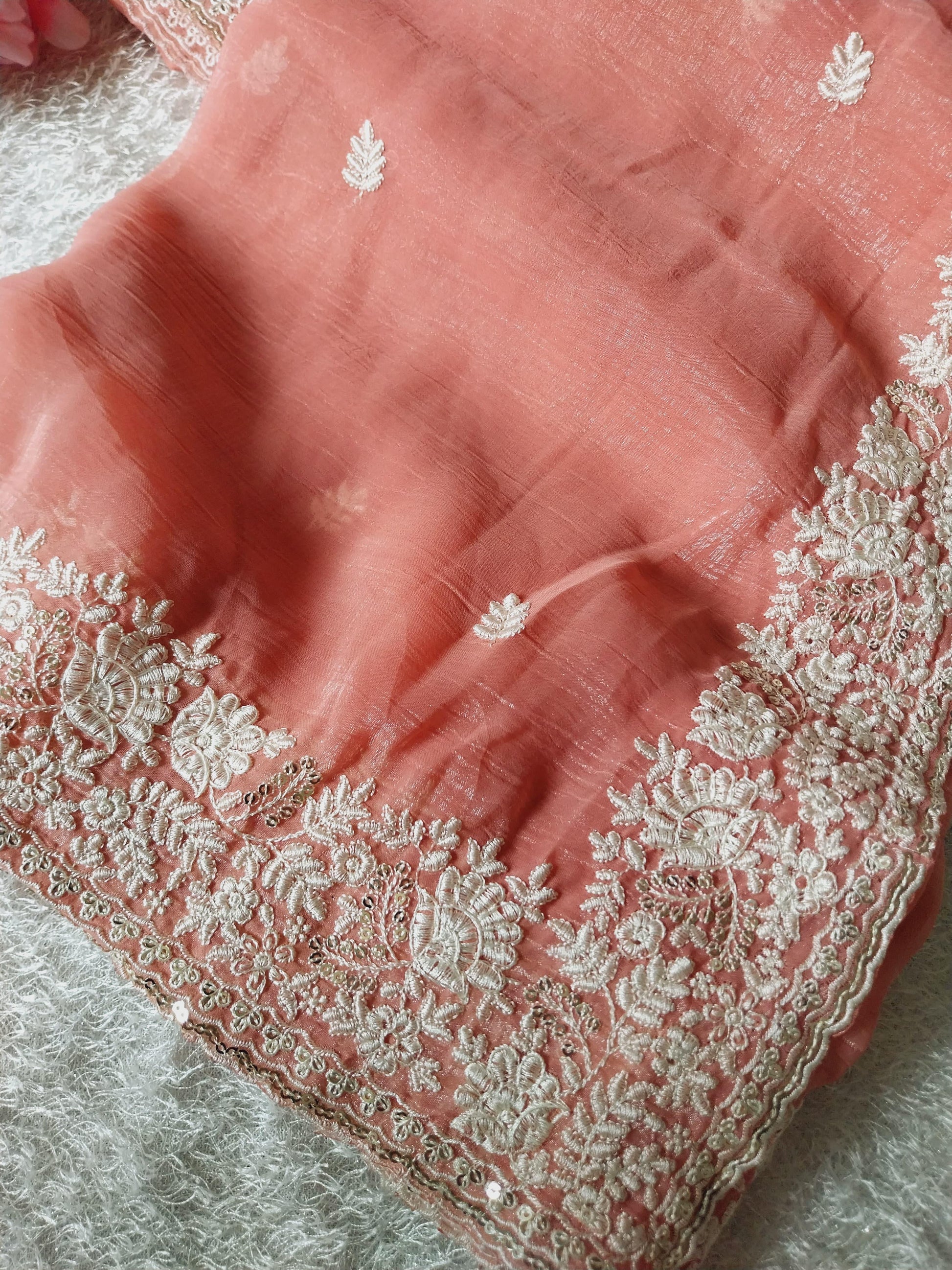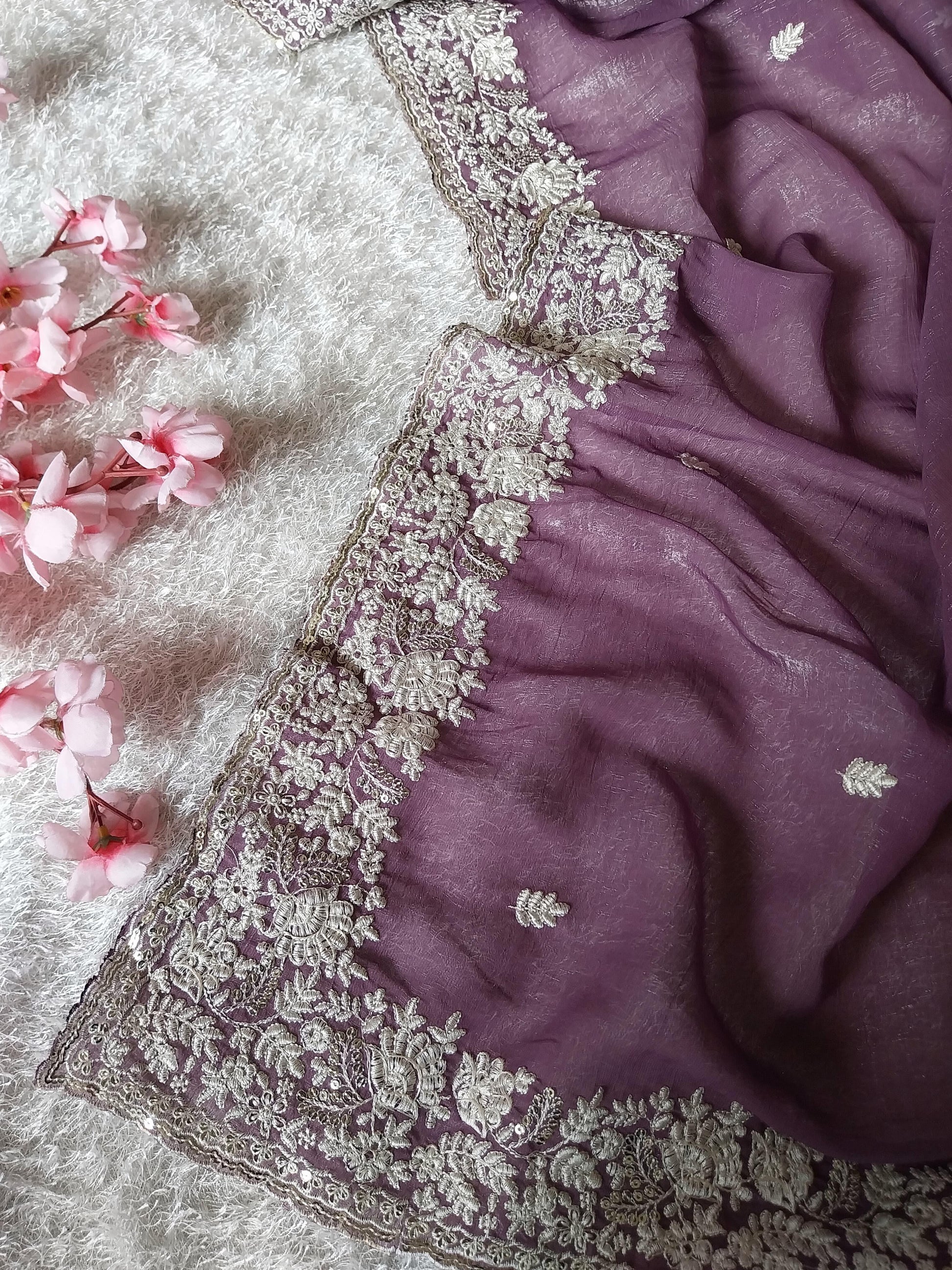 Adorned with delicate thread and sequin embroidery all over, this saree brings sparkle, sophistication, and festive charm in every drape. ✨