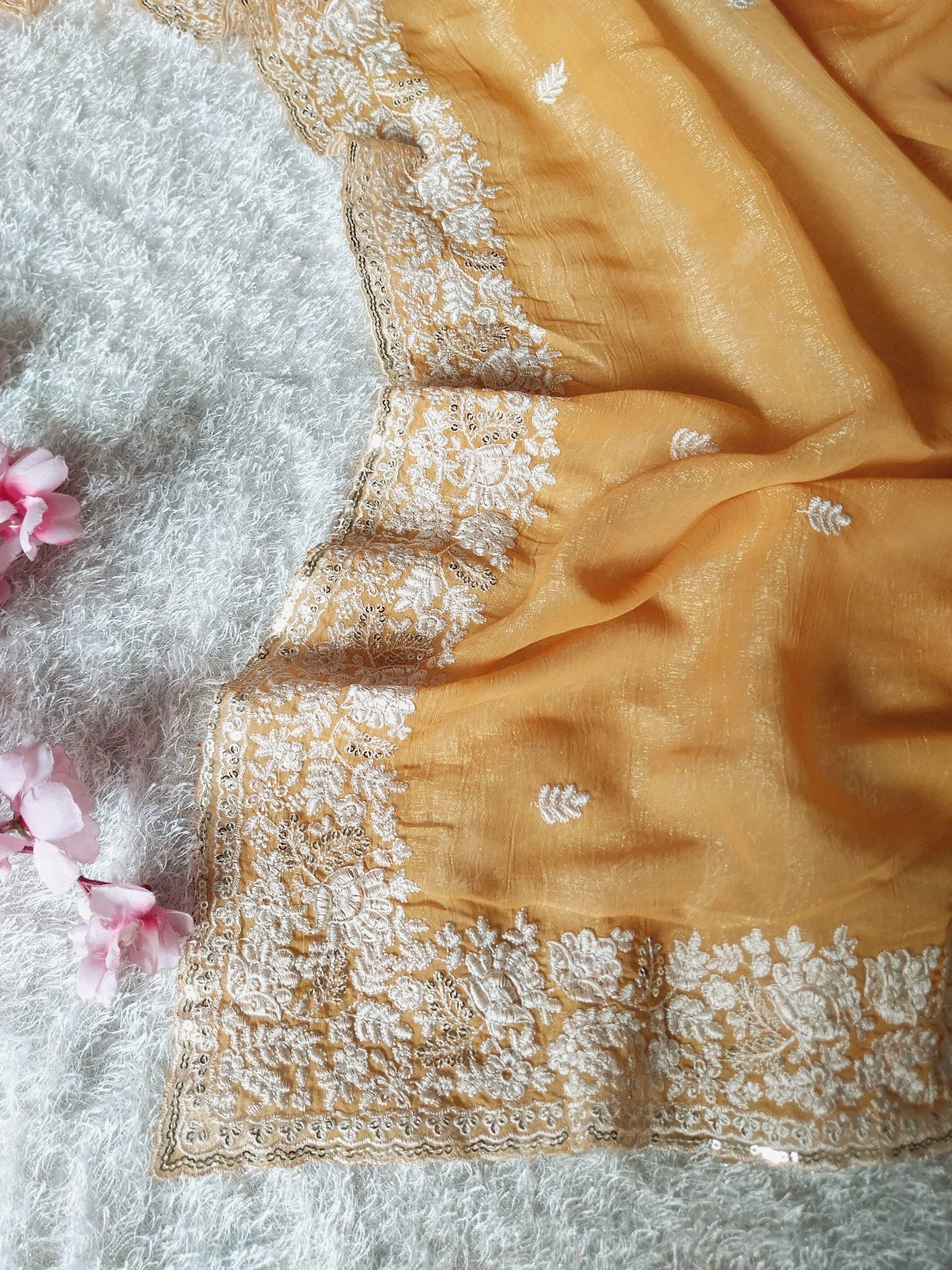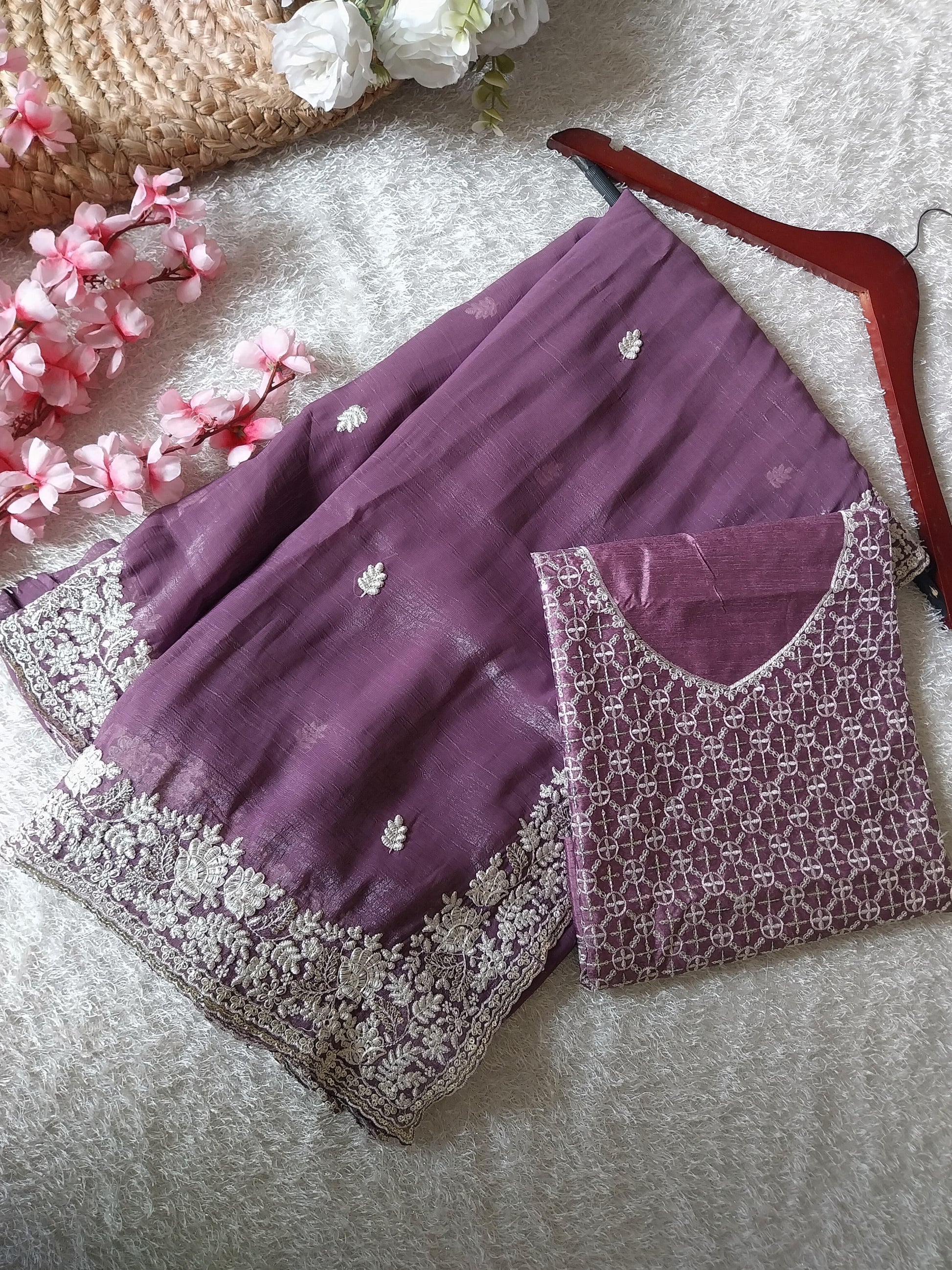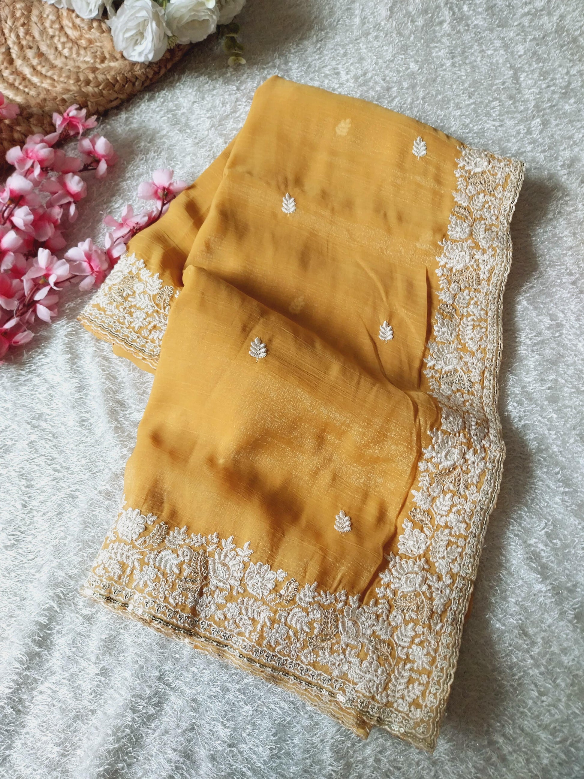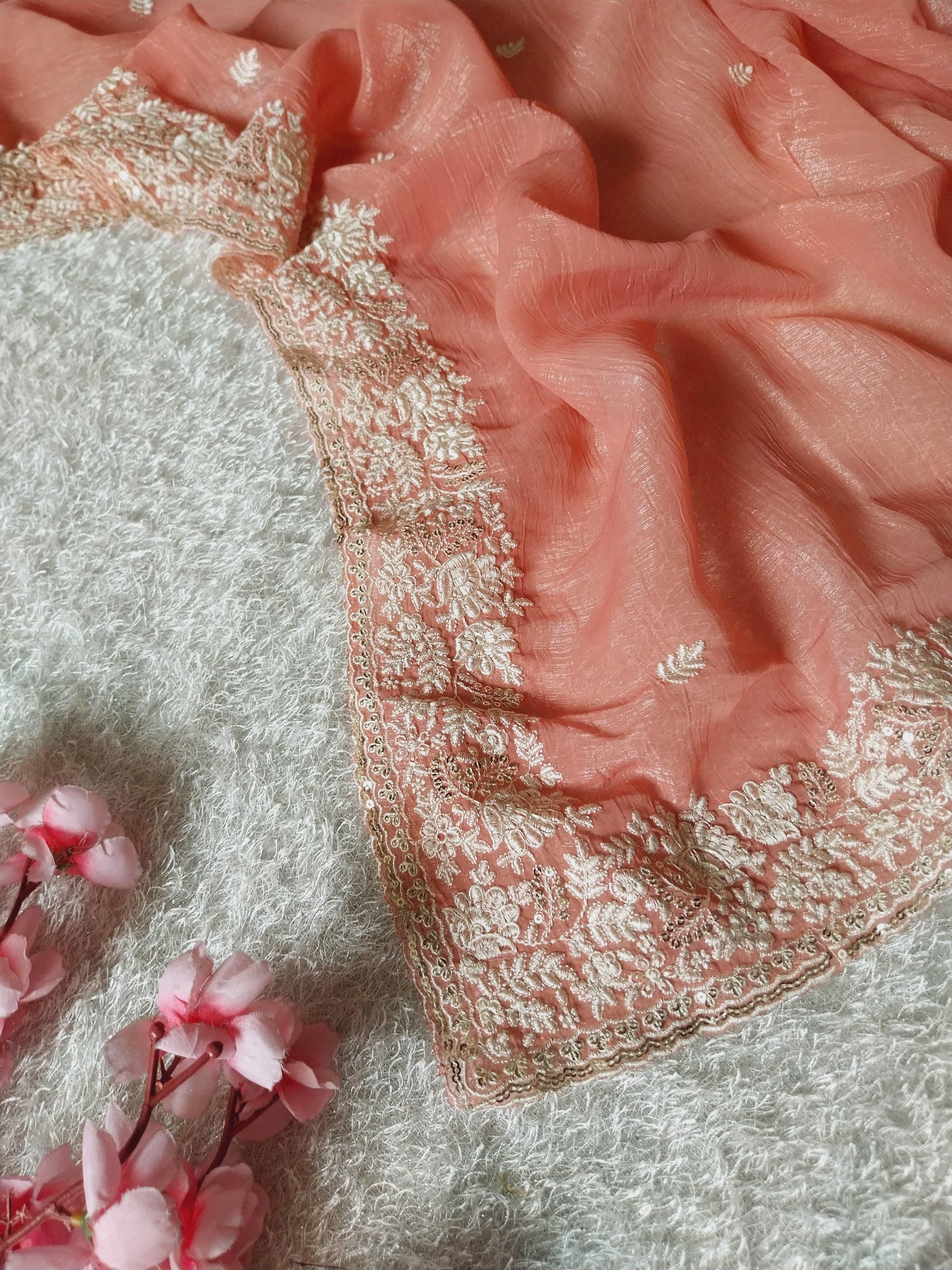 Adorned with delicate thread and sequin embroidery all over, this saree brings sparkle, sophistication, and festive charm in every drape. ✨
