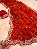 Red heavy georgette Bandhani Saree