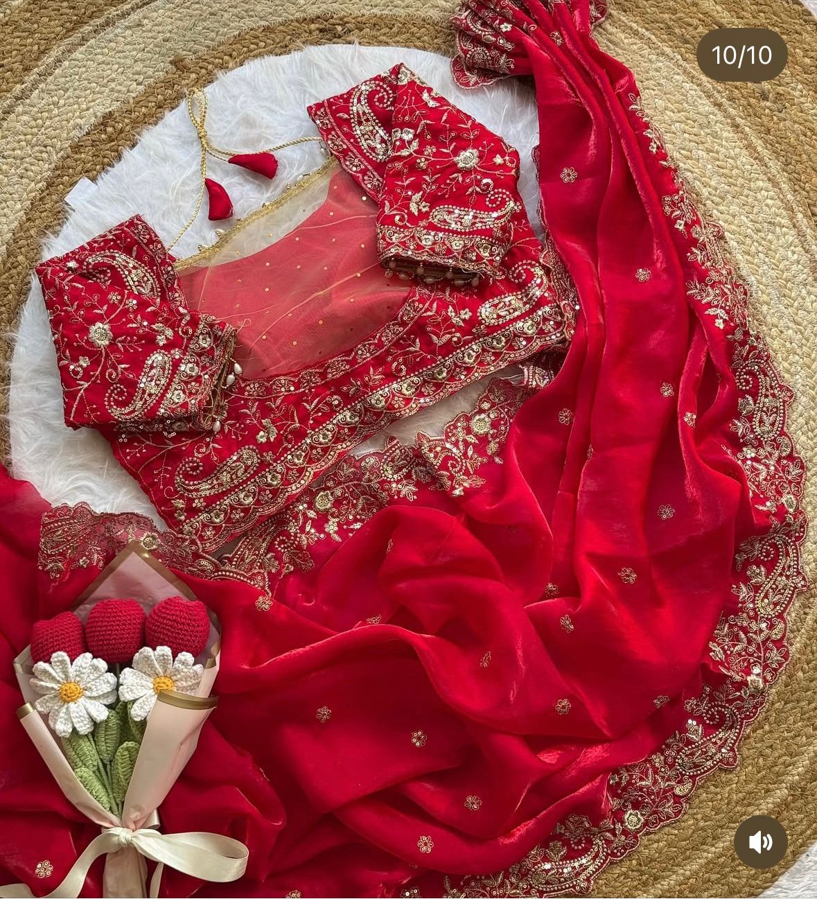 Work: Stunning embroidery work all over the saree, highlighted with a delicate sequence touch-up for that extra glitter! ✨
