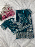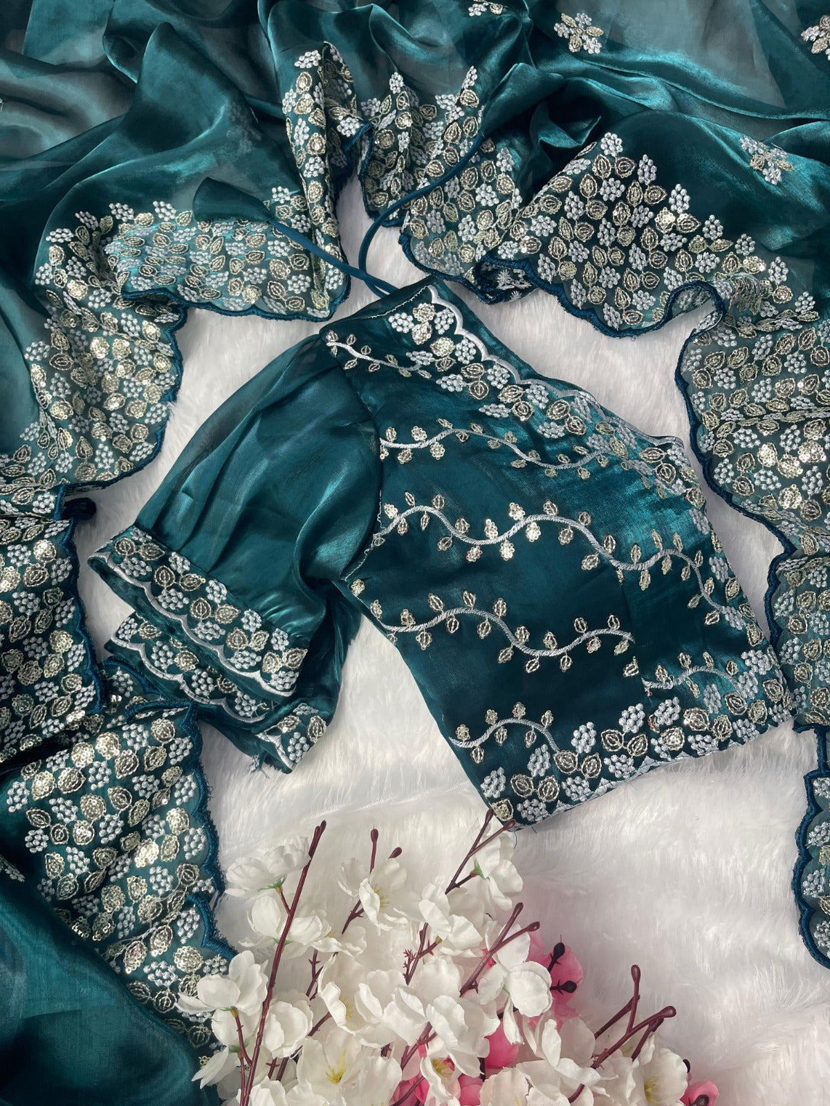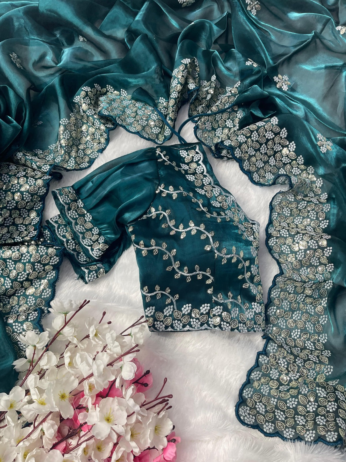 A show-stopping saree for parties, weddings, sangeet nights, and festive events — this design is all about grace, shimmer, and glamour.