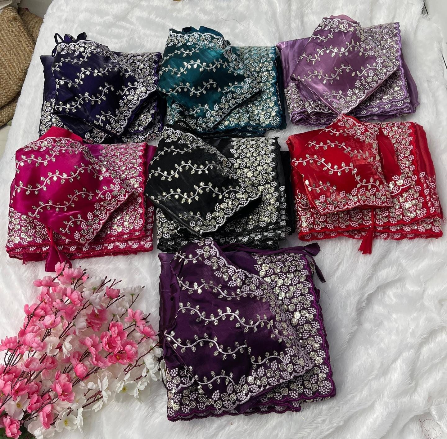 Step into the spotlight with our Pure Soft Jimmy Choo Silk Saree Collection, designed to bring luxury and sophistication to your festive and wedding wardrobe. 💃