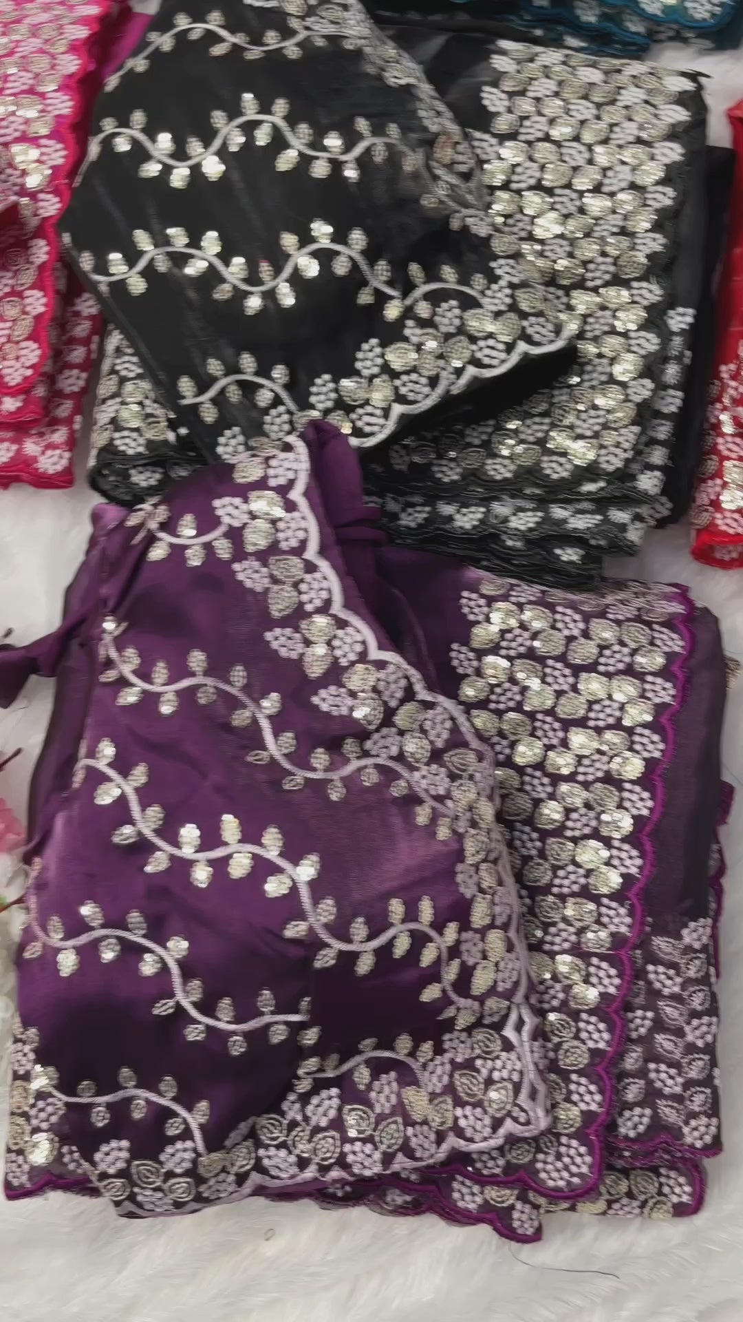 Crafted with stunning 3mm sequin work, elegant work borders, and delicate aarco detailing, this saree radiates pure designer charm — a true fashion statement for every occasion. ✨