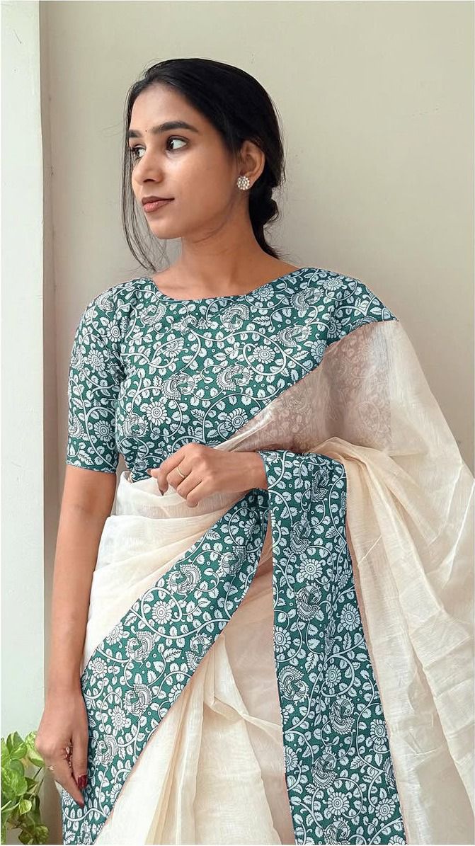 The combination of soft linen comfort and golden festive detailing makes this saree effortlessly classy. It’s ageless, timeless, and designed to make every celebration special.